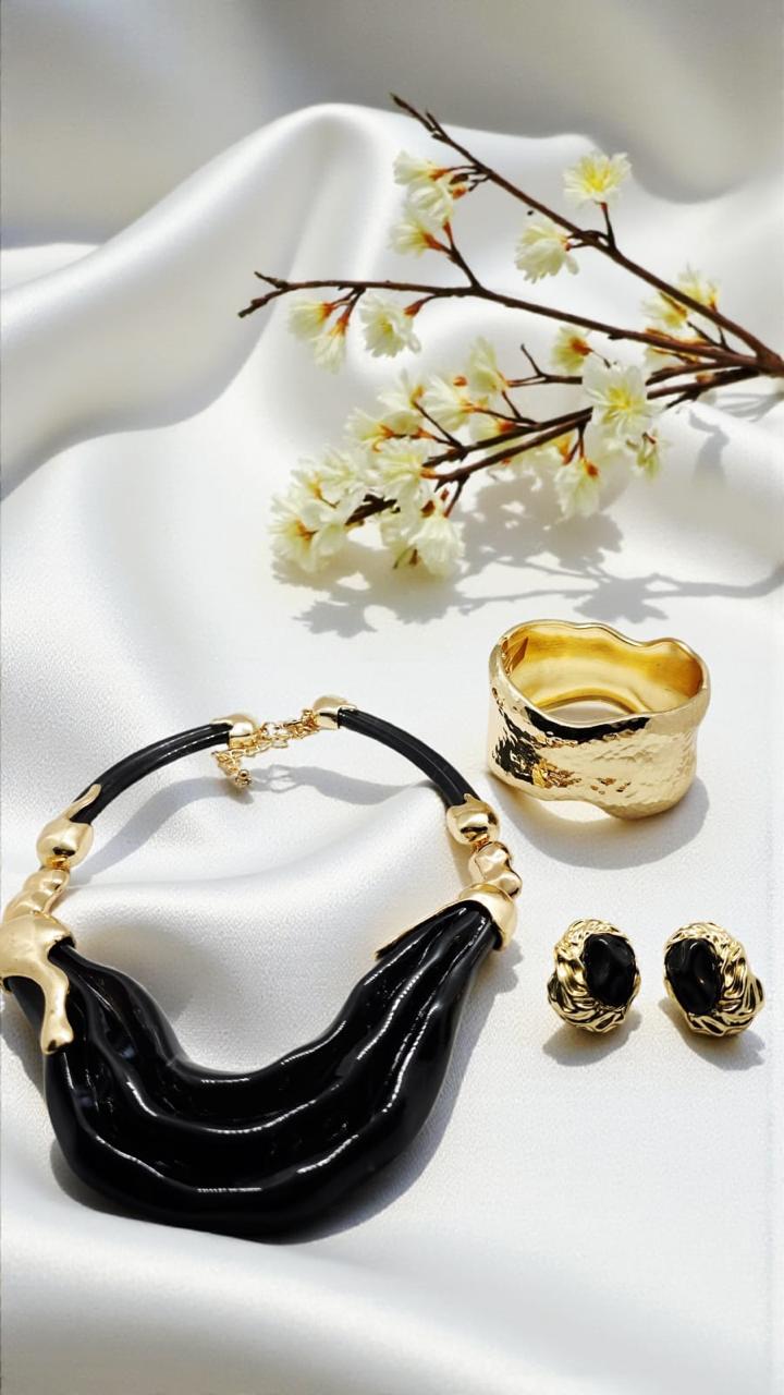Trio Dourado e Prata: Anel, Bracelete e Brincos