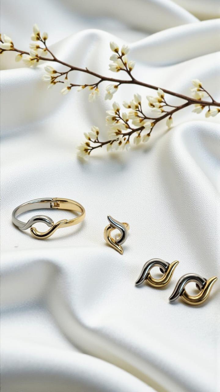 Trio Dourado e Prata: Anel, Bracelete e Brincos