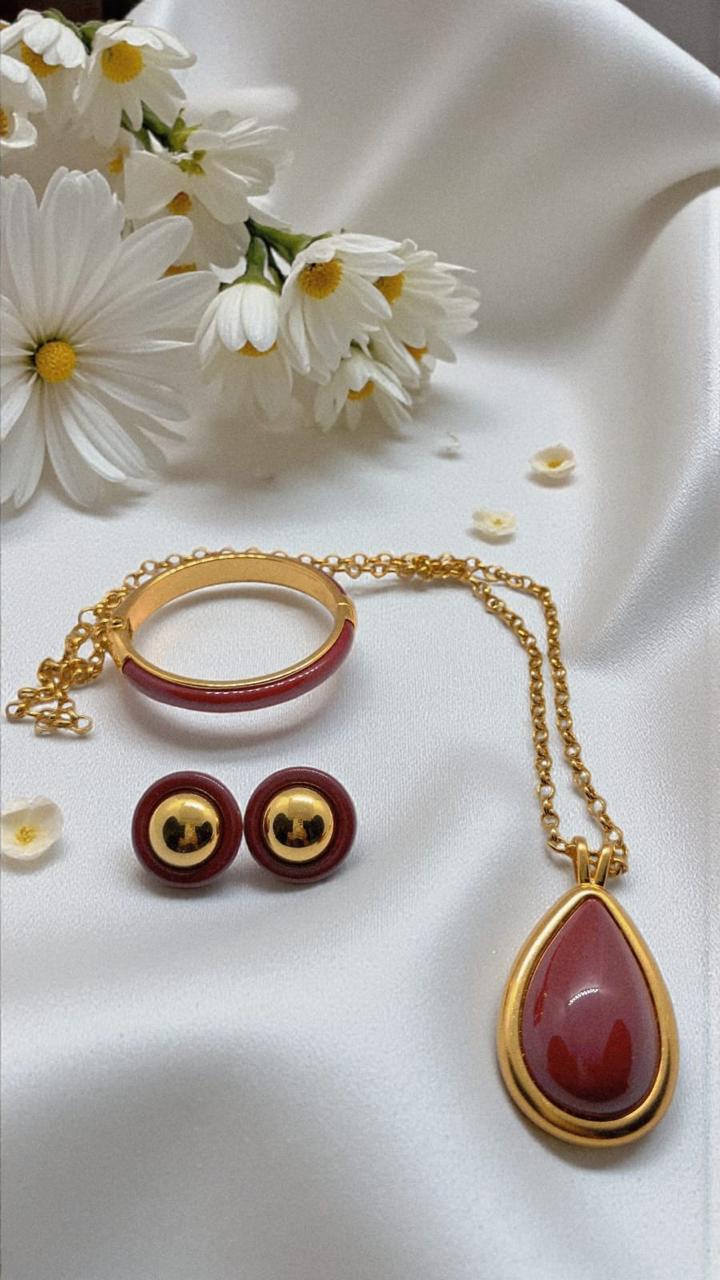 / Trio Vermelho: Bracelete, Brinco e Colar